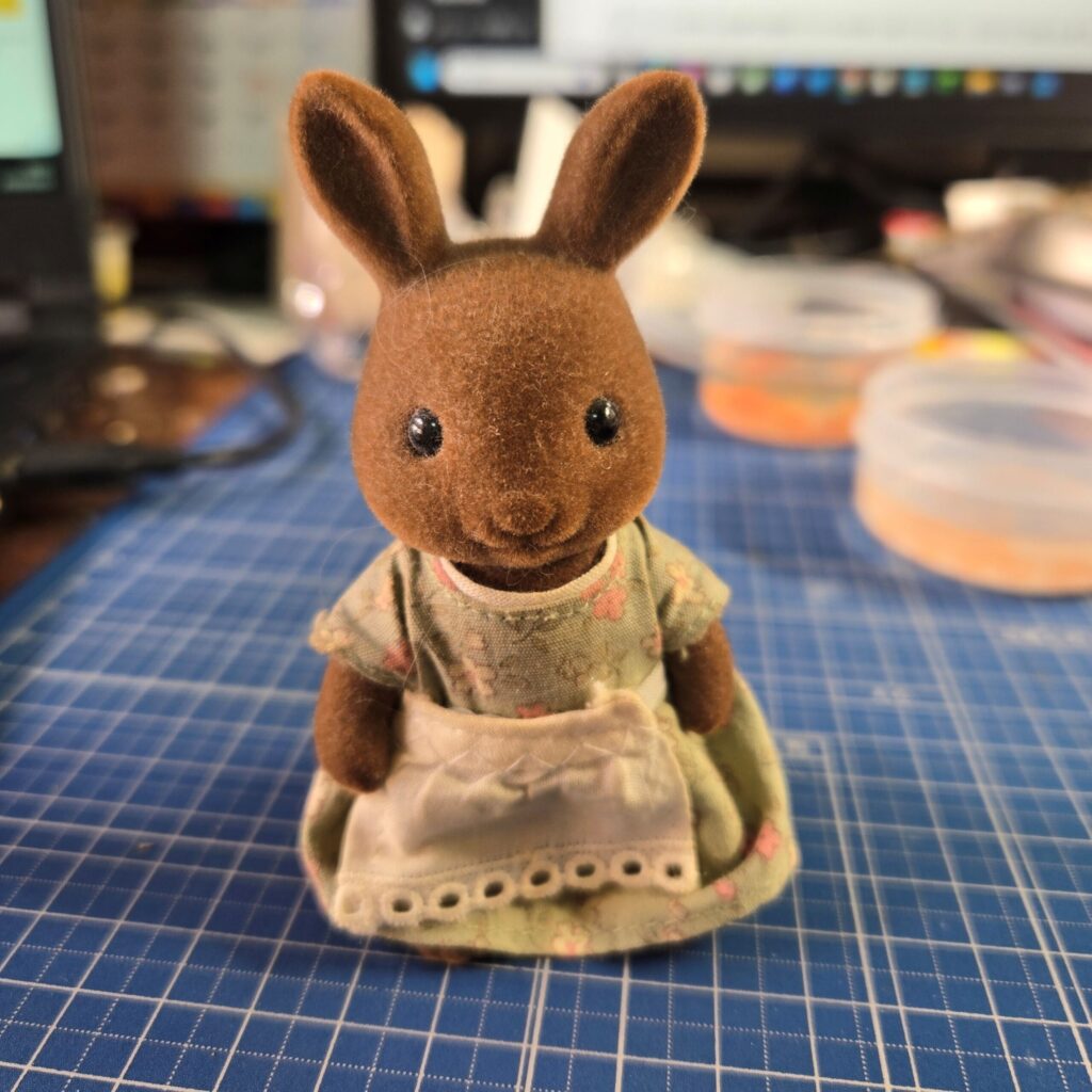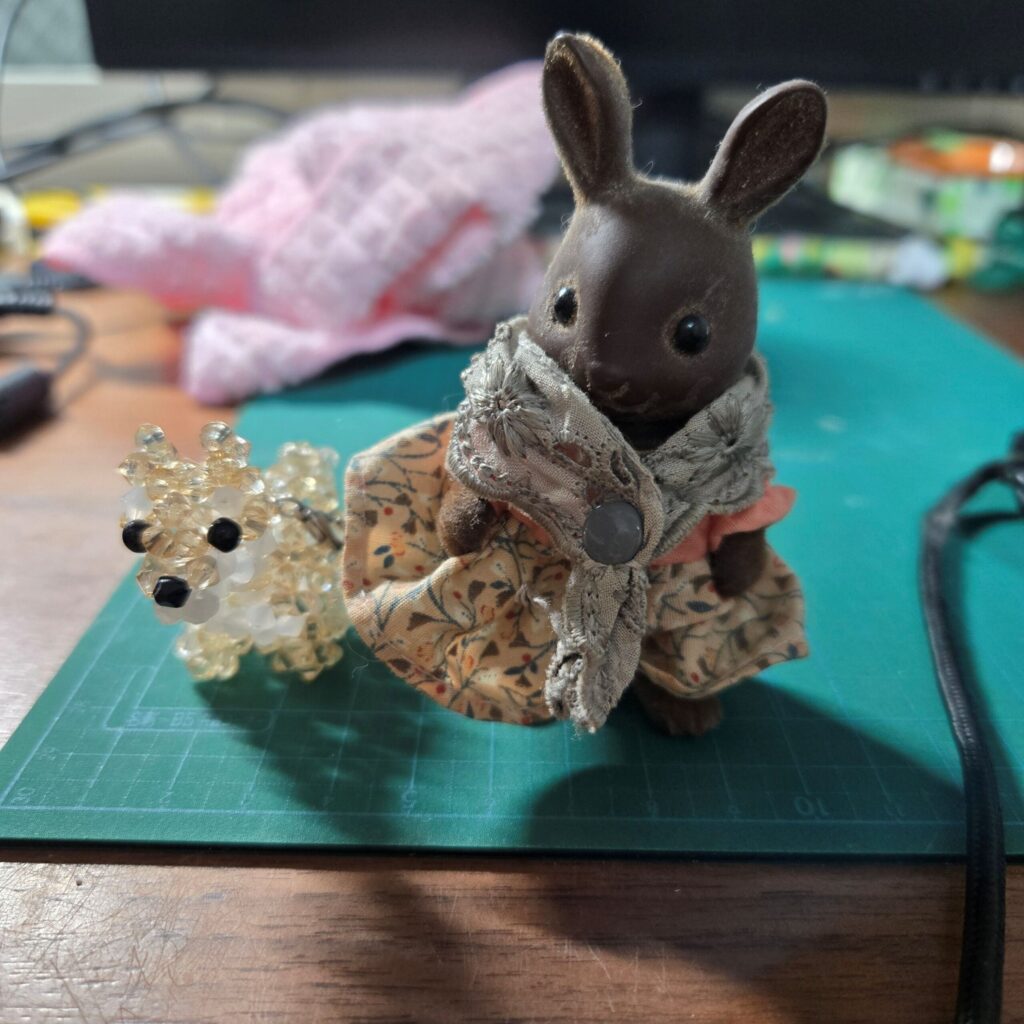 ブランカさん。ブラウンウサギファミリーのお母さんです。たまに娘のブラムちゃんに、「どうやってお父さんと知り合ったの」と聞かれることがあるそう。ブランカお母さんは、ちこ工房村の出身でなく、そこから離れたある港町の出身です。そこに出稼ぎに来ていた、ブラフさんと出会い、ブラフさんの一目ぼれで、お付き合いをしたそうです。そして、一緒にちこ工房村に来たそうですよ。子供に、ブラン君、ブラムちゃん、ぶらっとちゃんがいます。3人とも個性がある子供たちです。
